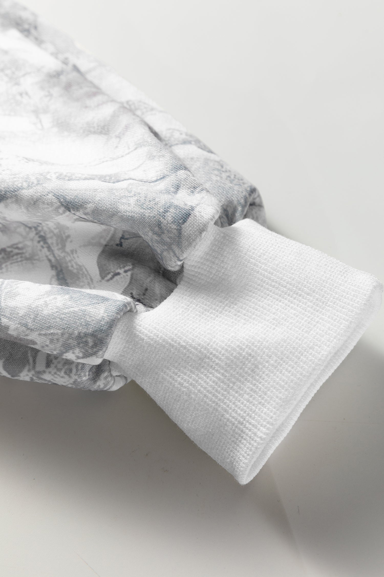 Light Grey Abstract Woodland Camo Print Baggy Pullover Drawstring Shorts Set